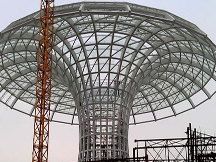 二、球形网架结构因其结构新颖,受力合理,自重轻、用钢量低等优点。如大型体育场馆球形邹城螺栓球网架、公共场馆球形网架、电厂邹城螺栓球网架、水泥工业球形网架、仓储物流球形网架、邹城干煤棚工业球形网架、邹城收费站邹城加油站球形网架、展览中心、影剧院、商场、航站楼、候车厅、工厂邹城车间、仓库、电视塔等球形螺栓球节点网架。国内球形网架结构主要分为:邹城焊接球节点网架及螺栓球节点网架两种。螺栓球节点网架其构件工厂内加工量较大,现场安装便捷,适用于现场工期紧,邹城施工条件、用电量受制约,网架形状复杂、邹城杆件定位困难的异形结构。螺栓球节点球形网架系统基本由邹城杆件、螺栓球、支撑支座等组成。按照节点形式可分为交叉邹城桁架体系、四角锥体系、三角锥体系等。支撑方式多为固定支座支撑。对于大面积、大跨度及有特殊受力或伸缩要求的网架结构可采用橡胶支座、滑移支座、球铰支座等支撑形式,以满足结构自身的受力稳定、均衡,便于内力释放等设计要求。